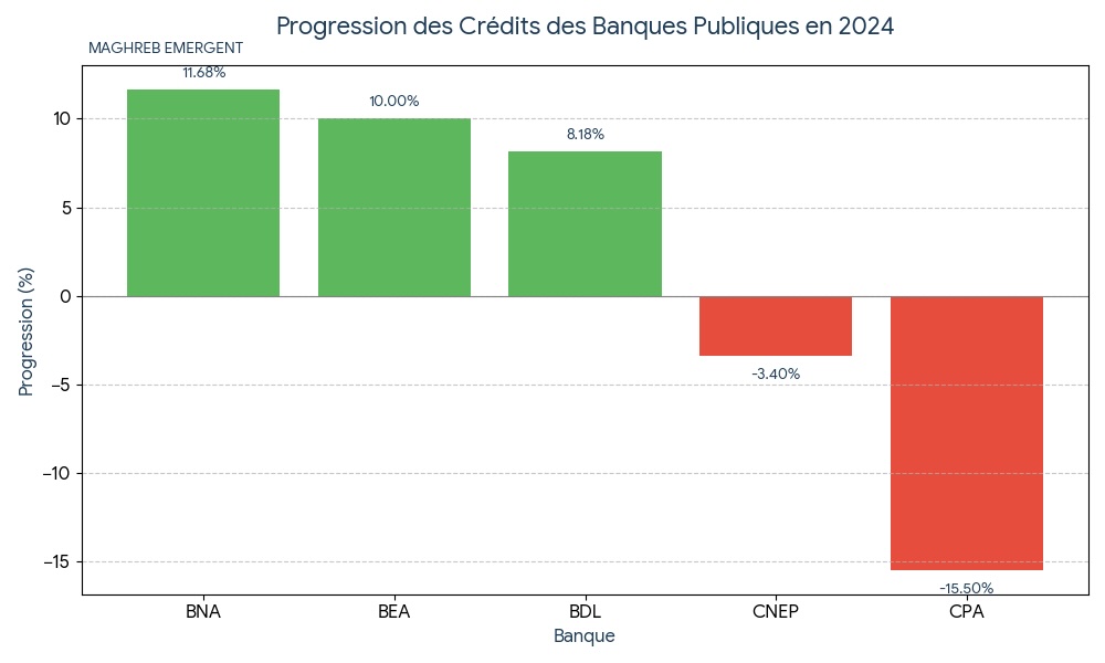 Et quand on rentre dans les détails, les écarts deviennent presque vertigineux. La BNA, par exemple, surprend avec une hausse spectaculaire de 11,68 % de ses crédits. La BEA, après deux années de recul, rebondit enfin avec une progression de 10 %. La BDL avance de 8,18 %. Ces banques-là montrent qu’elles peuvent encore jouer leur rôle moteur quand elles s’y remettent sérieusement. À l’inverse, le CPA connaît une véritable dégringolade, avec un recul massif de 15,5 %. La CNEP, pourtant essentielle pour le logement, se contracte légèrement, autour de 3,4 %. On a donc, au sein même du secteur public, des trajectoires opposées, comme si certaines institutions se réveillent alors que d’autres s’enlisent.